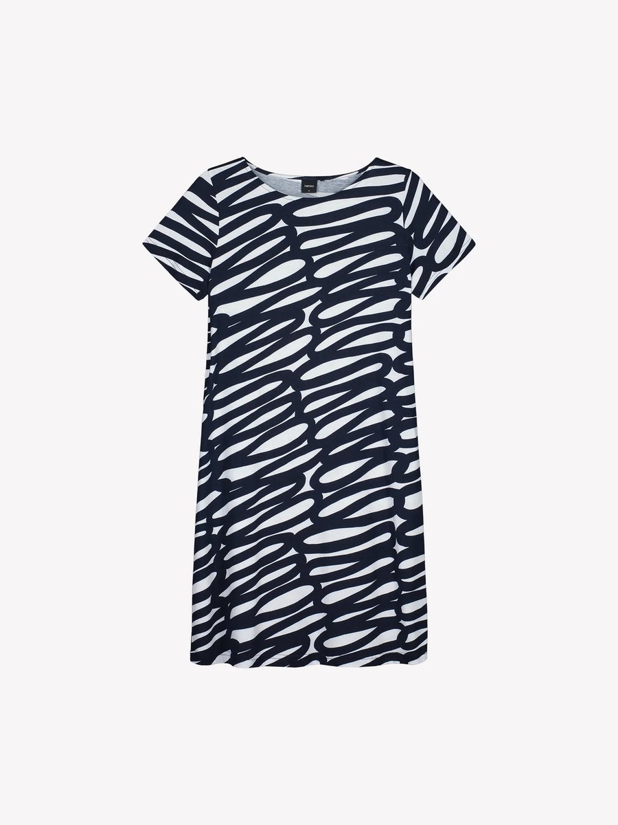 Nanson kaunis Luonnos-kuosillinen yöpaita. Yöpaidassa on 1/2-mittaiset hihat sekä O-pääntie. Väri on sinivalkoinen. Koot S-3XL.