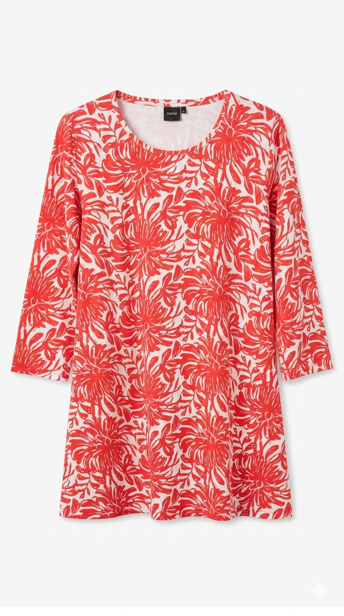 Naisten kuosillinen punavalkoinen Safiiri-tunika tyylikkäällä