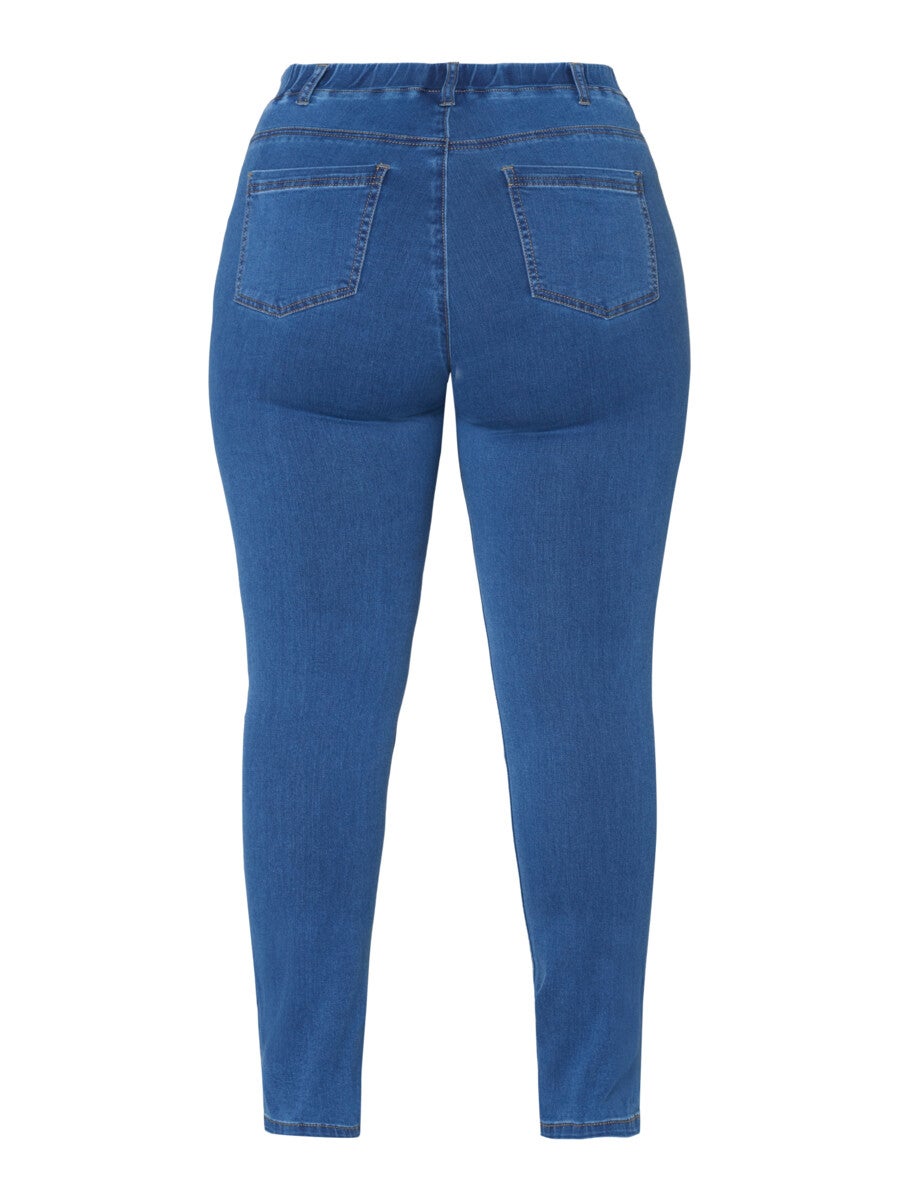 Cison plus-mitoituksen joustofarkut, joissa on kapeneva lahje ja kokojoustovyötärö. Farkut ovat "slim fit", eli jalkaosa on kapeampi, mutta vyötäröllä on kunnolla tilaa - kuten Cison mitoitukseen kuuluu. Vyötärössä on lisäksi vyölenkit. Väri on denim. Koot 38-50.