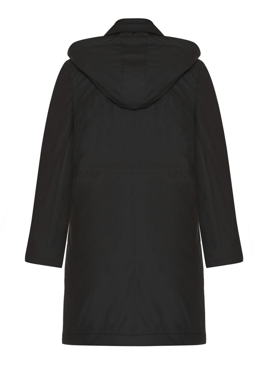 Brandtexin puolipitkä, säänkestävä toppatakki jossa on sisällä tyylikäs liiviosa. Takissa on kiinteä huppu ja vetoketjutaskut sivuilla. Takin sisällä on kiristenauhat sekä tarrakiinnitteinen povitasku. Takin väri on musta. Koot 38-50